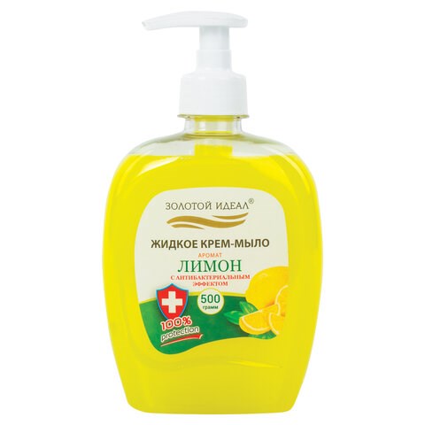 Мыло-крем жидкое 500 г ЗОЛОТОЙ ИДЕАЛ "Лимон", с антибактериальным эффектом, дозатор, 606786