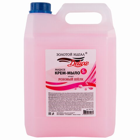 Мыло-крем жидкое DELUXE, 5 л, ЗОЛОТОЙ ИДЕАЛ "Розовый шелк", перламутровое, 607498
