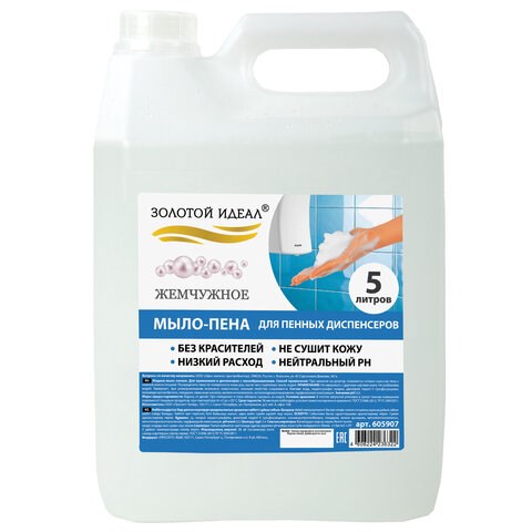 Мыло-пена для специальных диспенсеров 5 л ЗОЛОТОЙ ИДЕАЛ "Жемчужное", 605907