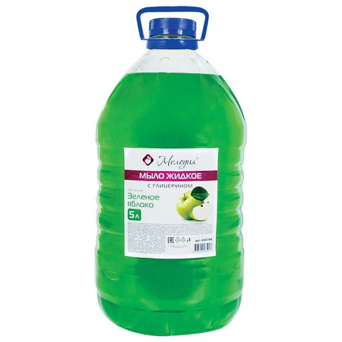 Мыло жидкое 5 л, МЕЛОДИЯ "Зеленое яблоко", с глицерином, ПЭТ, 604788