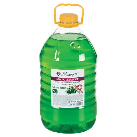 Мыло жидкое с антибактериальным эффектом 5 л МЕЛОДИЯ "Семь трав", ПЭТ, 606986