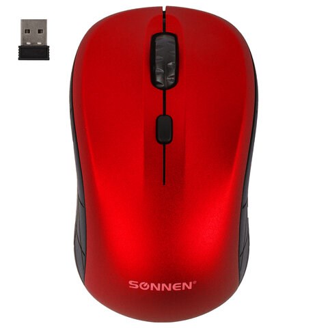Мышь беспроводная SONNEN V-111, USB, 800/1200/1600 dpi, 4 кнопки, оптическая, красная, 513520