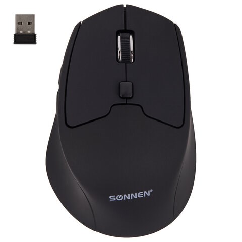 Мышь беспроводная SONNEN V33, USB, 800/1200/1600 dpi, 6 кнопок, оптическая, черная, SOFT TOUCH, 513517