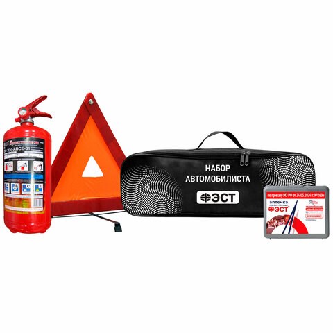 Набор автомобилиста "На техосмотр": аптечка (приказ 260н), огнетушитель ОП-2, знак, сумка, 3867