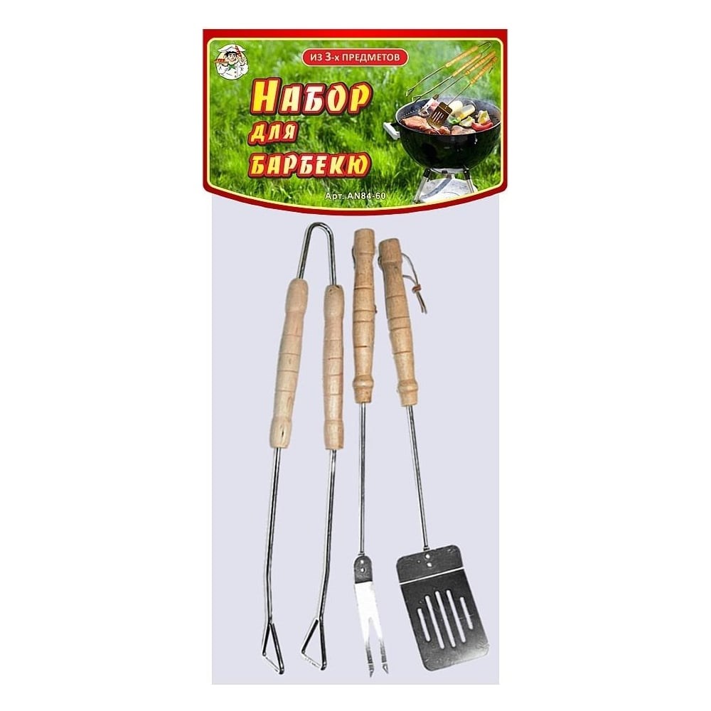 Набор для барбекю МУЛЬТИДОМ Отдых 3 предмета AN84-60 используется для приготовления мясных блюд, полуфабрикатов, курицы, рыбы, а также для подачи их к столу. Все аксессуары оснащены длинной рукояткой для комфортного и безопасного процесса приготовления пищи на открытом огне. Рабочая часть изготовлена из хромированной стальной проволоки, что обеспечивает прочность и долгий срок службы.
