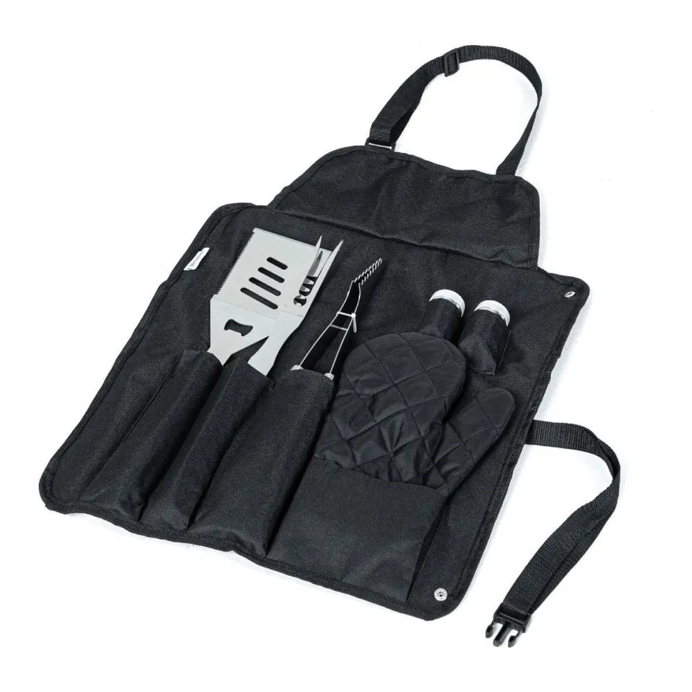 Набор для гриля из 6 предметов в фартуке Green glade ST001 обязательно пригодится вам во время проведения загородного пикника или отдыха на даче. В него входят все самые полезные и необходимые инструменты для приготовления вкусных и ароматных продуктов гриль. Все кухонные принадлежности для гриля выполнены из высококачественной пищевой нержавеющей стали, они долговечные, не подвержены коррозии, выдерживают высокие перепады температур и не прослужат вам долгие годы. Лопатка, щипцы и вилка для барбекю из нержавейки имеют длинные ручки, что позволяет использовать их при приготовлении еды на углях без специальных рукавиц или прихваток. Стальные предметы из набора для барбекю и гриля легко поддерживать чистыми, достаточно просто промыть их под струей воды с использованием универсальных моющих средств или положить в посудомоечную машину. Походный набор для барбекю занимает совсем немного места, поэтому его всегда можно взять с собой в пеший поход для отдыха на природе.