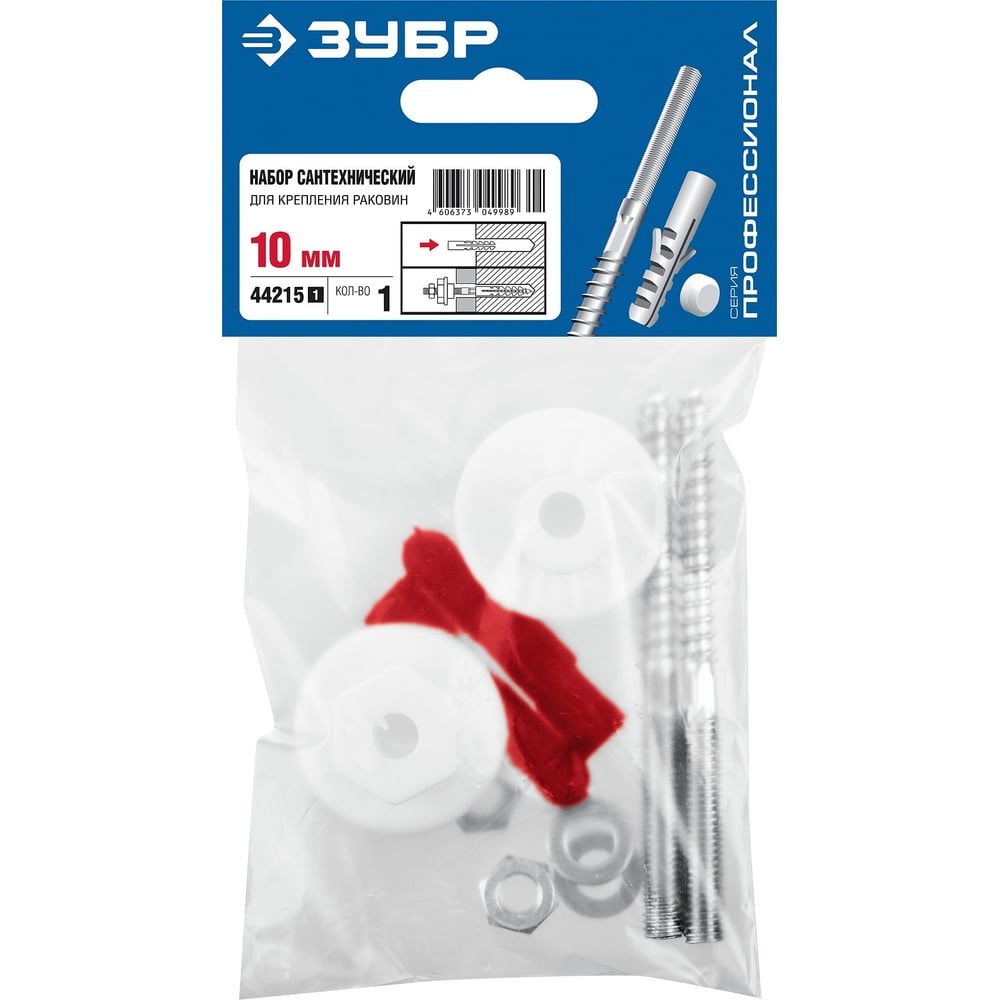 Набор для крепления унитазов 10 мм, белый ЗУБР Профессионал 44215_z01 предназначен для крепления унитазов к бетонному или кирпичному основанию. Диаметр предварительного сверления: 10 мм.
