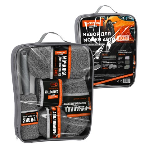 Набор для мойки авто 10 в 1, серый, СУМКА ДЛЯ ХРАНЕНИЯ В КОМПЛЕКТЕ, DASWERK (ДАСВЕРК), 609482