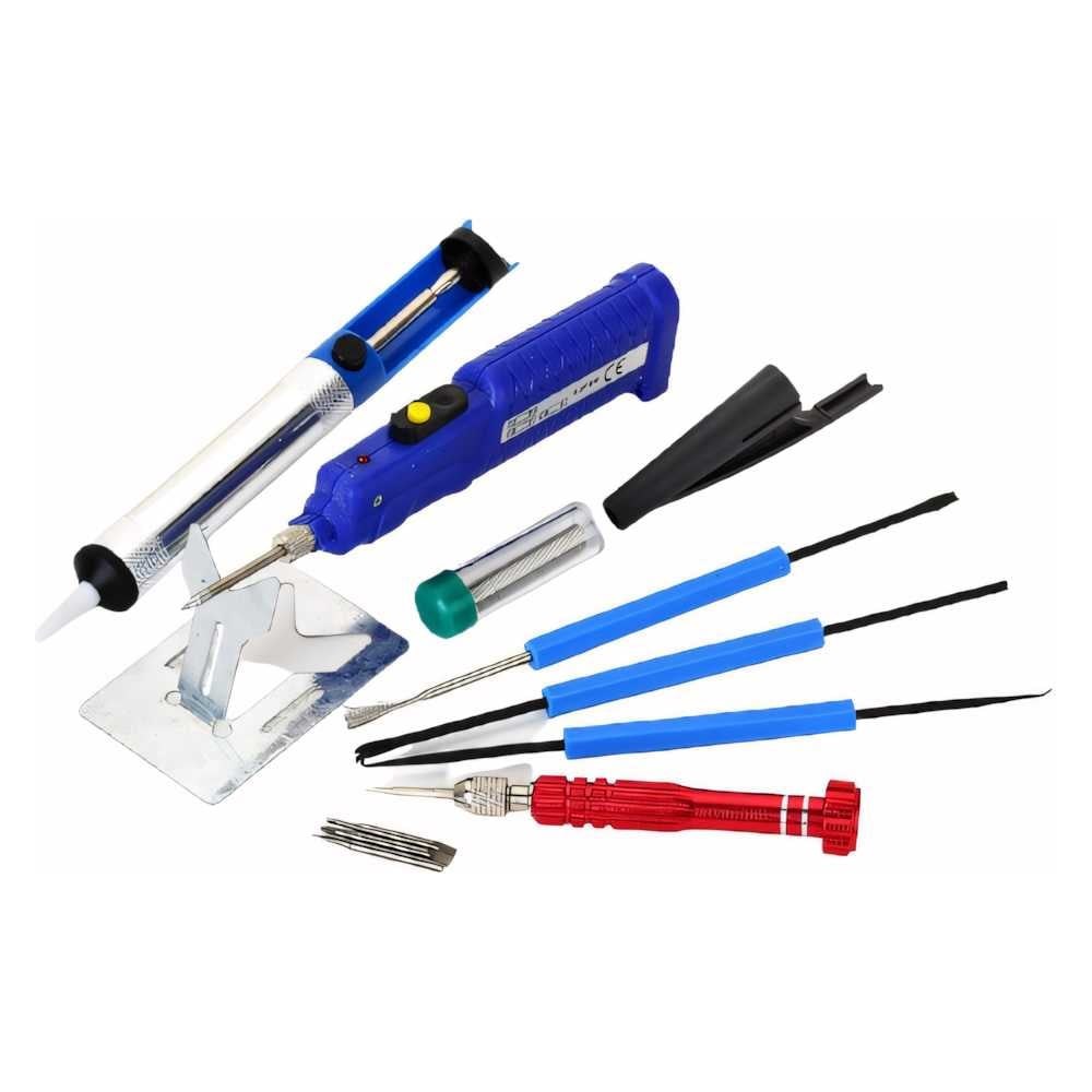 Набор для пайки: паяльник 8Вт, оловоотсос, подставка, припой, отвертка, инструмент для монтажа REXANT ZD-972E 12-0167 служит для выполнения электромонтажных работ (ремонта электротехники и пайки различных изделий) при условии отсутствия доступа к электросети. Питание паяльника осуществляется от трех батареек типа АА. Аппарат прост и удобен в использовании, особенно в местах с ограниченным доступом. Подходит даже для новичков.