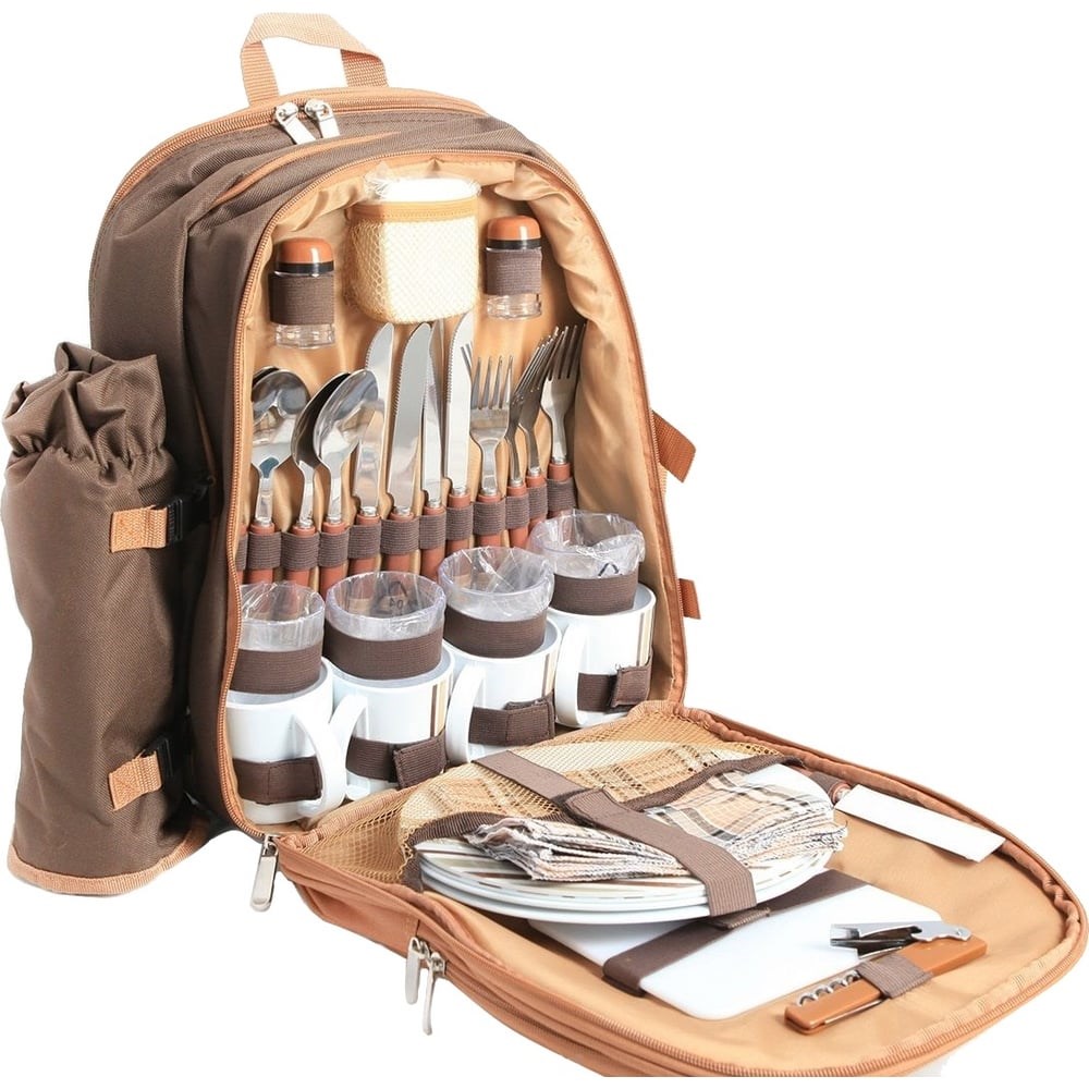 Набор для пикника Green glade 30 предметов, 12 л Т3141 подходит для организации приятного отдыха на свежем воздухе. Рассчитан на 4 персоны. Изотермическая сумка-холодильник обладает вместимостью 12 л. Столовые приборы изготовлены из пищевой нержавеющей стали, прослужат долго, обеспечивая комфорт в различных условиях. Материал сумки обладает водоотталкивающими свойствами.