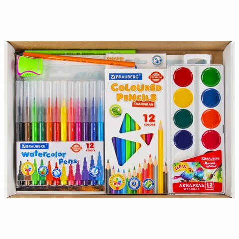 Все самые необходимые принадлежности для рисования и творчества в надежной упаковке. Состав набора: - фломастеры 12 цветов - 1 шт.; - цветные карандаши 12 цветов - 1 шт.; - краски акварельные 12 цветов - 1 шт.; - точилка - 1 шт.; - карандаш чернографитный - 2 шт.; - альбом для рисования А4, 20 л. - 1 шт. Все принадлежности из этого набора предназначены для развития творческих способностей и реализации художественных идей. С помощью данного набора можно создавать яркие и насыщенные рисунки, экспериментировать с различными техниками и эффектами. В состав набора входят только высококачественные сертифицированные отечественные и импортные школьные принадлежности, соответствующие требованиям безопасности детских товаров законодательства РФ.