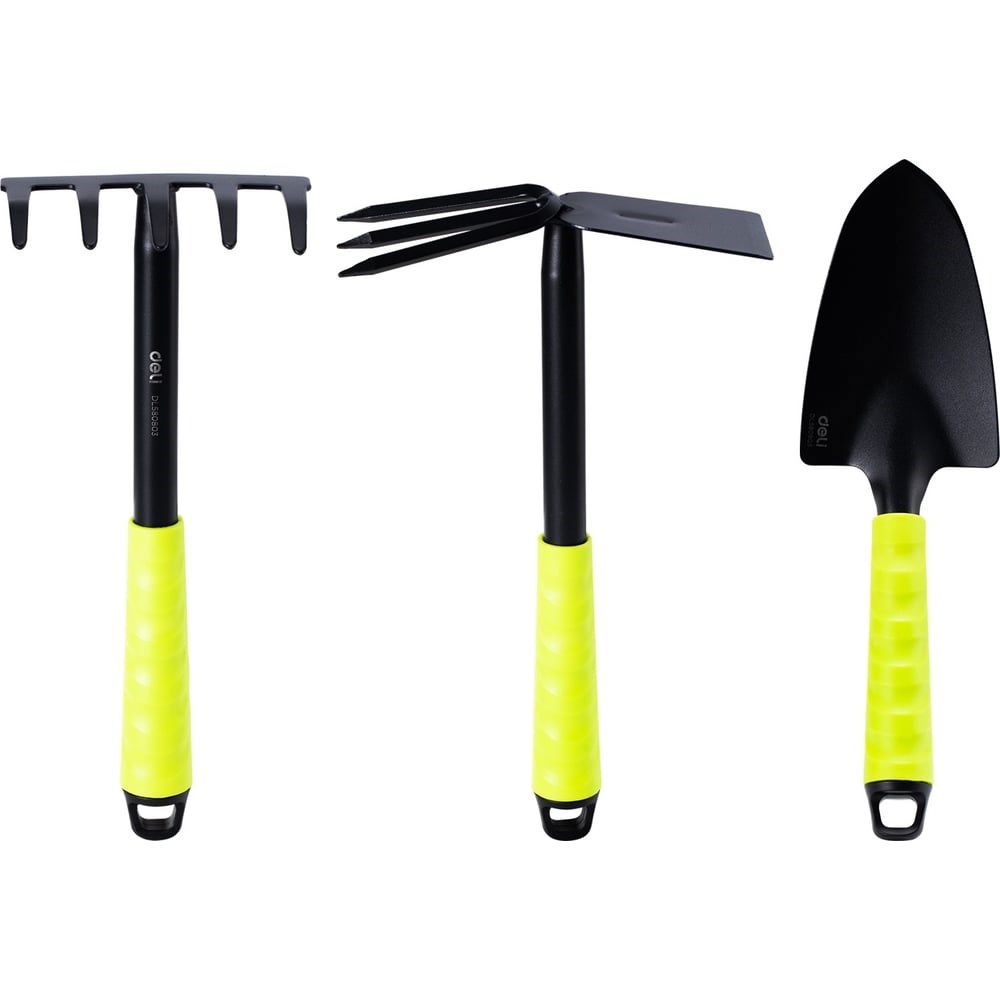 Набор для сада и огорода Deli DL580803 – удобные и прочные инструменты для ухода за растениями! В набор входят лопатка, мотыжка и грабли – всё, что нужно для посадки, прополки и рыхления почвы. Инструменты компактные (общая длина – 31 см), но прочные: толстый металл с порошковым покрытием не гнётся и не ржавеет, а удобные ABS-рукоятки не скользят в руках. Где пригодится? ✔ Домашние растения – пересадка цветов, рыхление грунта в горшках. ✔ Грядки и клумбы – прополка сорняков, окучивание, работа с рассадой. ✔ Теплицы и балконные сады – компактный размер идеален для узких пространств. ✔ Детское творчество – безопасные инструменты для юных садоводов. Почему стоит выбрать?