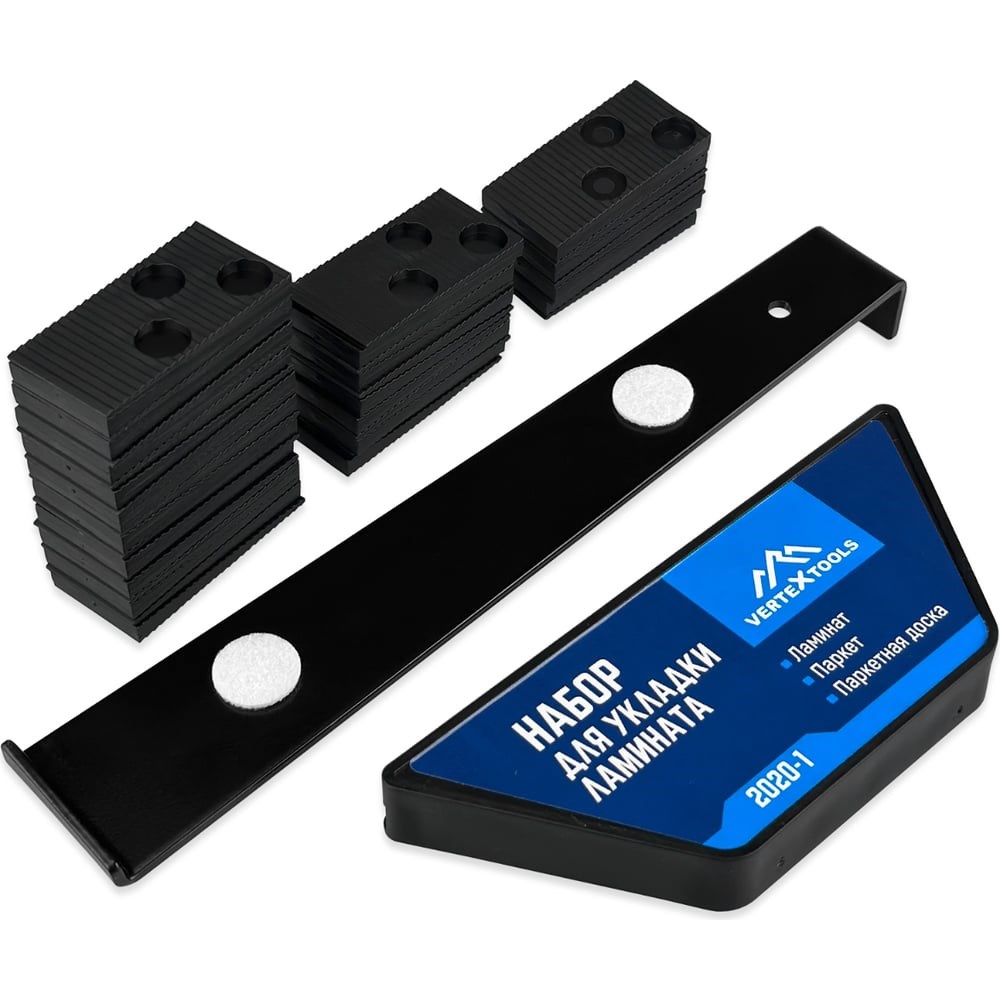 Набор для укладки ламината предназначен для правильной укладки напольного покрытия. С его помощью можно гораздо быстрее установить ламинат, и при этом получить качественный результат без дефектов и повреждений. Набор включает все необходимое для монтажа: пластиковый брусок, предназначенный для подбивки деталей напольного покрытия с целью их более плотного прилегания друг к другу не повредив замок панелей; монтажная скоба, служащая для подбивки напольного покрытия при его укладке вдоль стен последнего ряда, обеспечивая плотную усадку; пластиковые распорные клинья, служащие для корректировки зазора между панелями и стеной, обеспечивают точность выравнивания первого ряда при укладки напольных покрытий.