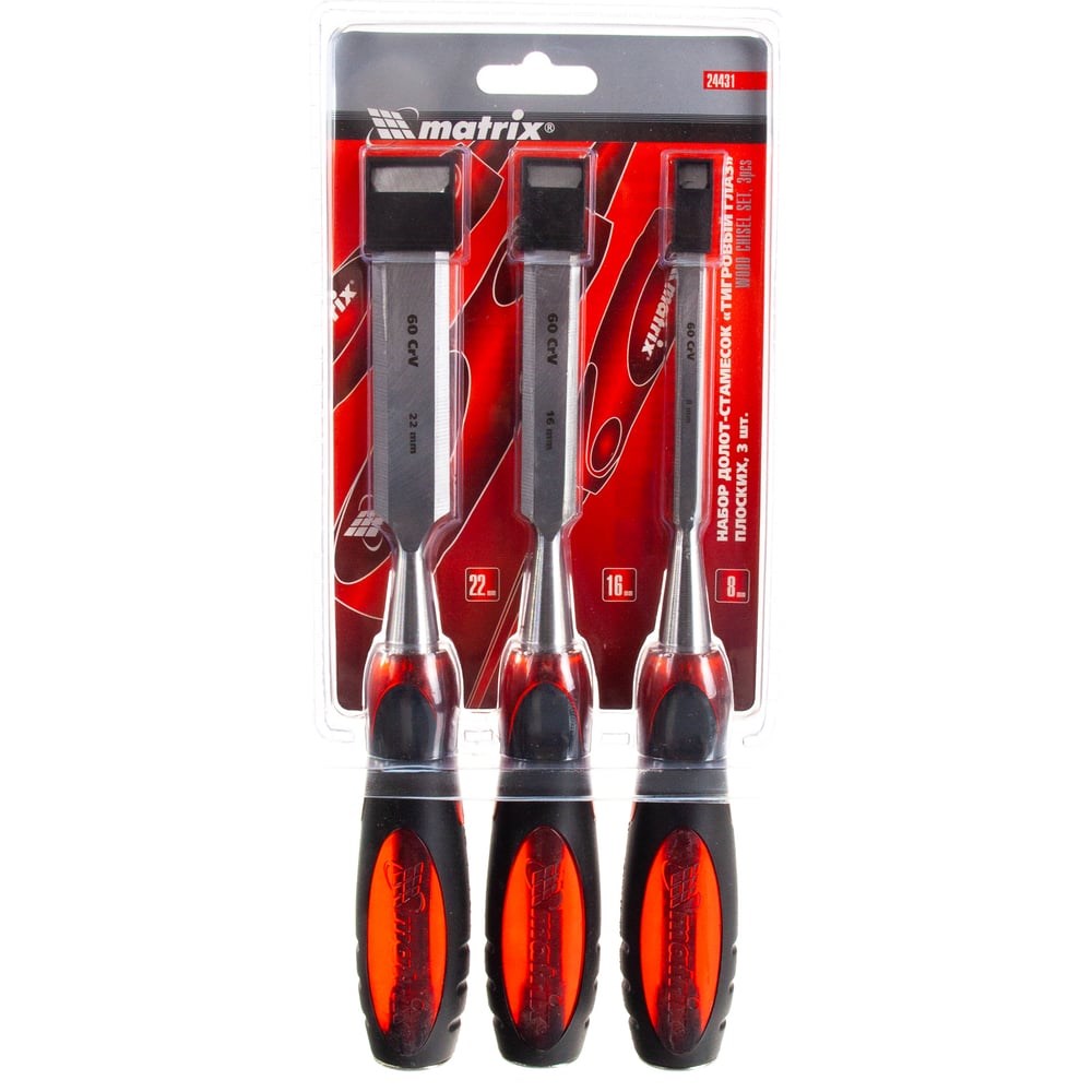 Набор долот-стамесок плоских Matrix «Тигровый глаз» 24431, 3 штуки 8-16-22 мм, используется для обработки древесины любых пород. Стамески позволяют выбирать пазы, проделывать выемки, снимать фаски, выдалбливать отверстия разной ширины. Рукоятки из ударопрочного пластика имеют металлический затыльник и выдерживают удары киянкой или молотком для легкого врезания в древесину любой твердости. Набор пригодится столярам, плотникам и мебельным мастерам.