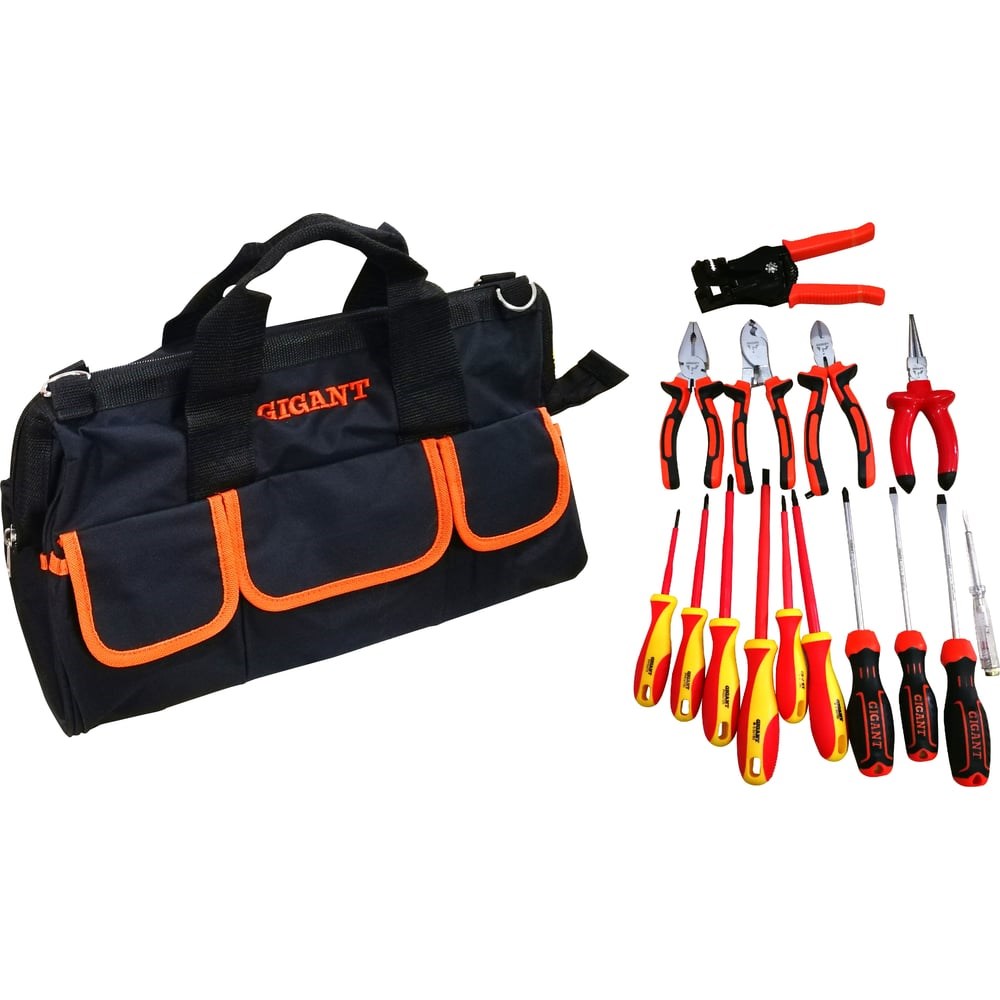 Набор электрика Gigant 15 предметов ELS15 представляет собой профессиональный комплект инструментов, которые имеют диэлектрическое покрытие. Предназначен для работы под напряжением до 1000 В. Набор поставляется в специальной тканевой сумке для удобного хранения и переноски. Рабочие части инструментов изготовлены из хромованадиевой стали. Отвертки из набора оснащены эргономичными рукоятками, которые не скользят в руке и безопасны при работе. Хромированное покрытие рабочих частей защищает их от коррозии.