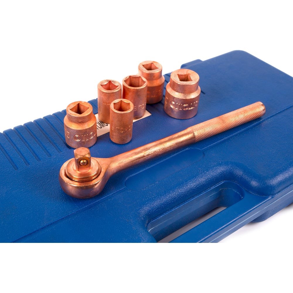 Набор торцевых головок представлен в оптимальной комплектации и содержит популярный размерный ряд. Используется в автомастерских для обслуживания резьбовых соединений. Инструмент поставляется в прочном кейсе для надежного хранения и удобной транспортировки. Покрытие инструмента медное, толщиной 30-50 мкм, выполнено электрохимическим способом. Омедненное покрытие позволяет применять его на территориях и помещениях с высокой пожаро-взрывоопасностью. Соответствует требованиям нормативных документов ТУ 25.73.30-001-42865381-2020.
