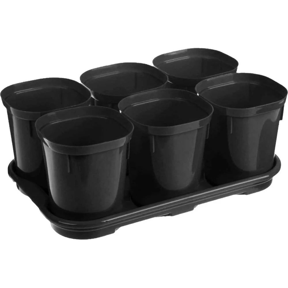 Набор горшков для выращивания рассады INGREEN Smart Solution с поддоном, 6x400мл, черный 35006035ЧР предназначен для выращивания саженцев, рассады, цветов и других растений. Горшки оснащены небольшими дренажными отверстиями, которые позволяют содержать грунт в хорошем состоянии, что благоприятно влияет на рост растений. Вытаскиваемое дно горшков способствует бережной пересадке. Входящий в набор поддон поможет организовать место для рассады, а также избежать протечек и загрязнения поверхности. Дренажное отверстие в основании поддона обеспечит аэрацию воздуха, что позволит лишней влаге быстрее испаряться.