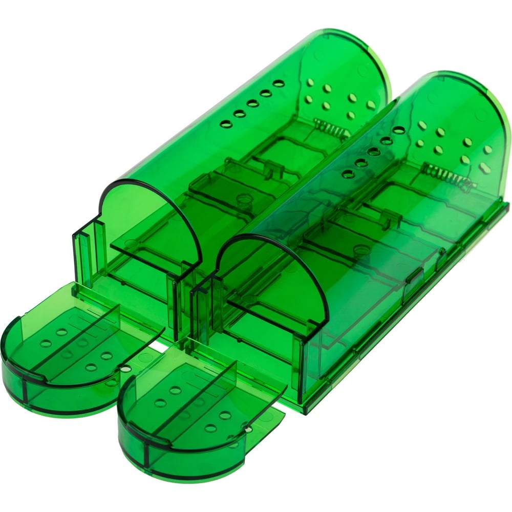 Набор гуманных мышеловок REXANT – это современный аналог классической мышеловки, позволяющей сохранить жизнь животному.Принцип действия очень простой: внутрь живоловки кладется приманка (для мышей отлично подходит, вопреки общему мнению не сыр, а поджаренный на масле черный хлеб), устройство размещается в месте обитания животного, которое нужно изловить. Спустя некоторое время внутрь живоловки заходит грызун с целью полакомится приманкой и собственным весом запускает в действие механизм, который захлопывает дверцу устройства. Животное не погибает, а остается в замкнутом пространстве с вентиляционными отверстиями, в котором оно способно просуществовать несколько дней без вреда для здоровья. Пойманного зверька можно отпустить в лес, поле или любую другую среду, чтобы он вам не досаждал.Данный вид ловушки самый гуманный, по сравнению с обычными мышеловками. Эта ловушка значительно лучше ядов, так как после них животное умирает в неконтролируемом месте.