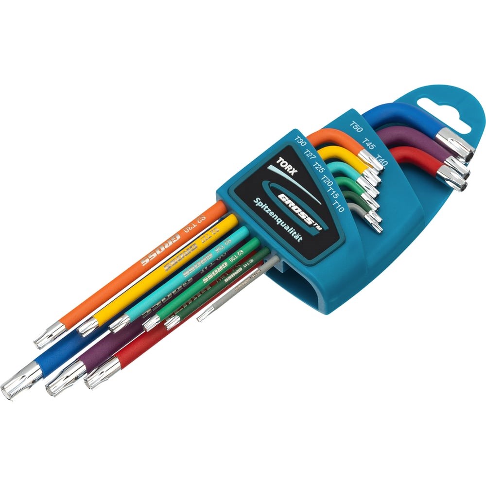 Набор ключей имбусовых экстрадлинных Gross 16402 из стали S2, с магнитом и покрытием хром/краска, включает в себя 9 инструментов размером T10-T50 мм. Используется для работы с крепежом, имеющим шлицы Torx и Tamper-Torx. Ключи увеличенной длины облегчают работу в ограниченном пространстве, а также позволяют экономить прикладываемые усилия. Набор будет полезен при ремонте электроприборов, велосипедов, автомобильной техники.
