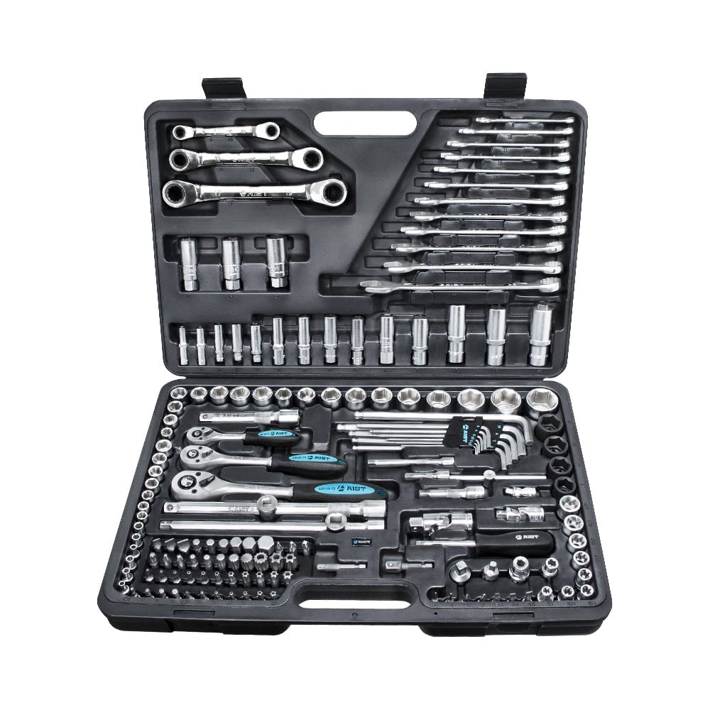 Набор инструмента 160 предметов AIST 4091160 00-00008102 представляет собой полноценный комплект, необходимый для проведения ремонта автомобиля. Комплект включает в себя большое количество бит, которые оптимальны для различных типоразмеров крепежа. Благодаря этому комплект удобен в использовании с современными моделями автомобилей. Наличие дополнительной оснастки в виде карданов и удлинителей существенно упрощает работу с труднодоступным крепежом. Большое количество ключей и трещоток позволяет работать с минимальным усилием и количеством действий со стороны работника.