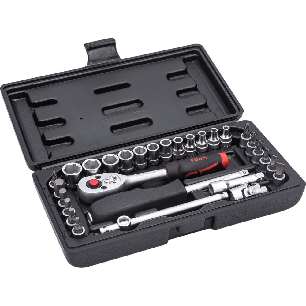 Набор инструмента с 6-тигранными головками 29 предметов FORCE 2292 представляет собой компактный и удобный комплект для работы с крепежом. Для монтажа различных винтов и саморезов набор дополнен большим количеством бит. Небольшой кейс обеспечивает компактность хранения и удобство переноски.