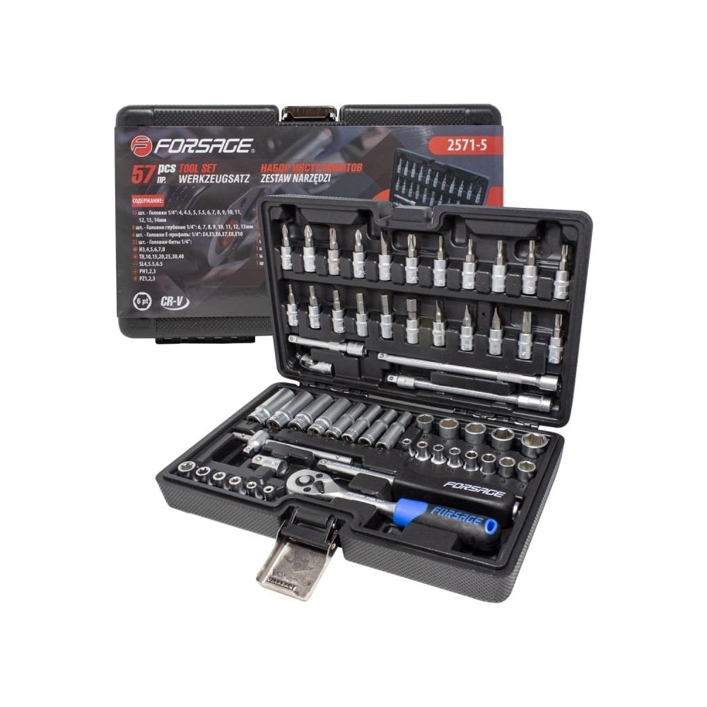 Набор инструментов Forsage — это идеальное решение для монтажных и ремонтных работ в автомобиле. Составленный из 57 предметов, он станет незаменимым помощником как для профессиональных механиков, так и для автолюбителей, желающих самостоятельно выполнять обслуживание и ремонт своей техники.Преимущества:Универсальность использования: Набор подходит для выполнения различных работ, связанных с ремонтом и обслуживанием автомобилей и другой техники.Высококачественные материалы: Инструменты изготовлены из хромованадиевой стали, что обеспечивает им повышенную прочность, устойчивость к коррозии и долговечность.Эффективность работы: Позволяет быстро и качественно проводить необходимые операции, что экономит ваше время.Удобный кейс: Все предметы аккуратно хранятся в пластиковом кейсе, который защищает инструменты от повреждений и обеспечивает удобство транспортировки. Кейс легко помещается в специальный отсек автомобиля, что делает его идеальным для работы в любых условиях.С набором инструментов Forsage вы всегда будете готовы к любым задачам, связанным с ремонтом и обслуживанием вашего автомобиля!