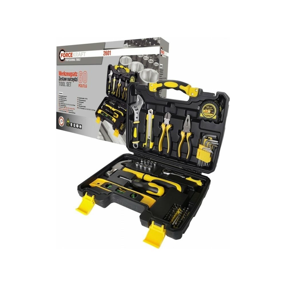 Набор инструментов ForceKraft — это универсальный комплект, предназначенный для выполнения любых ремонтных и монтажных задач в доме. Он станет незаменимым помощником для любого мастера, который хочет всегда иметь под рукой все необходимые инструменты для быстрой и качественной работы.Состав набора:Набор включает в себя 48 предметов, среди которых:ОтверткиПлоскогубцыРазводной ключШестигранные ключиТорцевые головкиИ многое другоеС таким комплектом вы легко справитесь с любыми бытовыми задачами — от замены замков и ручек до монтажа/демонтажа розеток и ремонта сантехники.Качество материалов: Все инструменты изготовлены из прочной стали, что обеспечивает их долговечность и устойчивость к деформации. Металлические детали обладают антикоррозийными свойствами, что позволяет использовать их даже в условиях повышенной влажности.Эргономика: Эргономичные рукоятки обеспечивают надежную и комфортную работу даже при длительном использовании, что снижает утомляемость.Удобство хранения: Пластиковый кейс с удобными отсеками для хранения и транспортировки позволяет держать все элементы в порядке и всегда под рукой.Многофункциональность:С помощью этого набора можно не только проводить ремонтные работы, но и выполнять установку новых элементов:Сборка мебели: Идеально подходит для установки или замены розеток и выключателей, а также для монтажа бытовой техники.Ремонт: Используйте отвертки, плоскогубцы и ключи для мелкого ремонта мебели, замены дверных петель или ремонта сантехники.