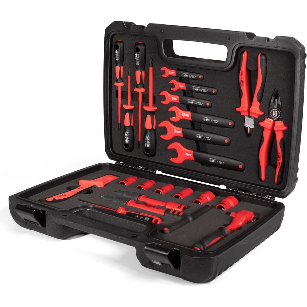 Набор изолированного инструмента КВТ НИИ-11 65186 пригодится во время электромонтажных работ. Состоит из 23 предметов. Полная изоляция инструмента гарантирует безопасность при работе под напряжением до 1000 В. В комплектацию входит пластиковый кейс для защиты от повреждений и удобства переноски.