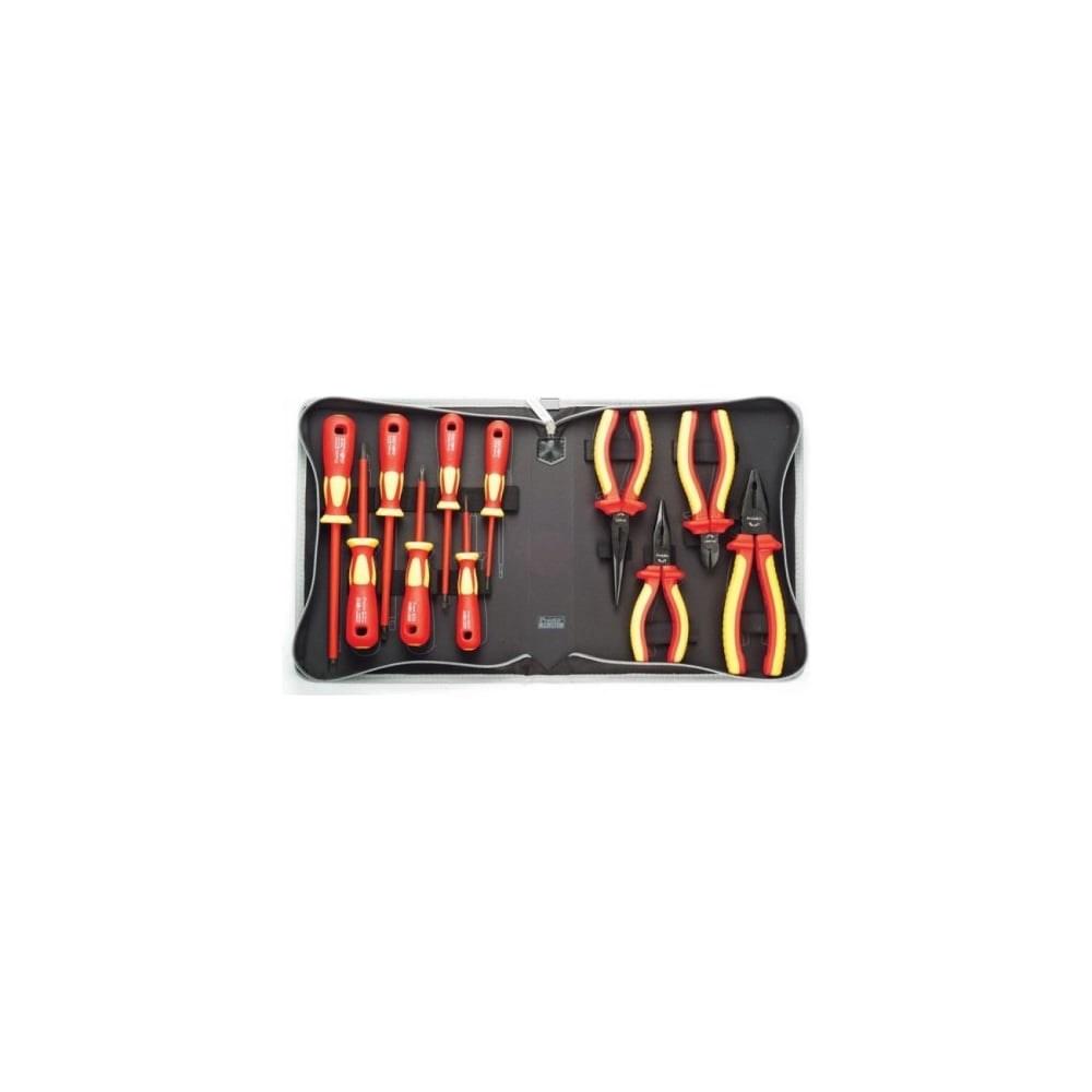 Набор диэлектрических инструментов PK-2802 ProsKit 00252380 состоит из 11 инструментов, предназначенных для электромонтажных работ. Изоляция позволяет работать под напряжением до 1000 В.