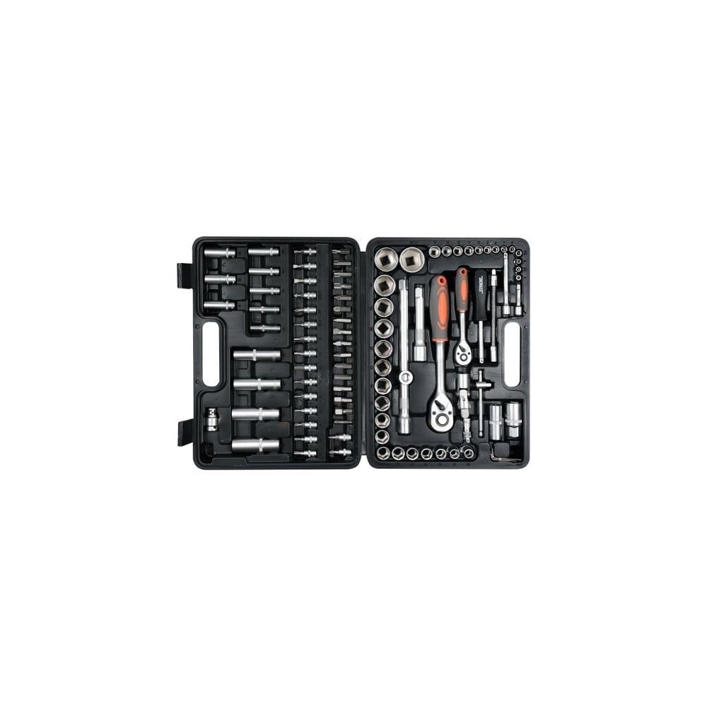 Набор инструментов STHOR 1/2 94 предмета пластиковый кейс 58687 подходит для широкой сферы применения, которая включает в себя: автомастерские; сборочные производства; мелкие и крупные предприятия. Комплектация включает в себя большое количество различной оснастки для работы со сложным крепежом, в том числе удлинители, карданы и адаптеры. Все инструменты изготовлены из хромванадиевой стали CrV 50BV3 твёрдости 45-47 HRC. В качестве дополнительного усиления использованы термообработка и холодная ковка. Для работы с труднодоступными винтами в автомобилях и сложных конструкциях набор оснащен гибким удлинителем.