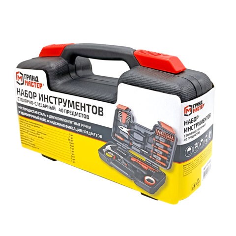 Набор инструментов столярно-слесарный, 40 предметов, пластиковый кейс, ГРАНДМАСТЕР, 671332