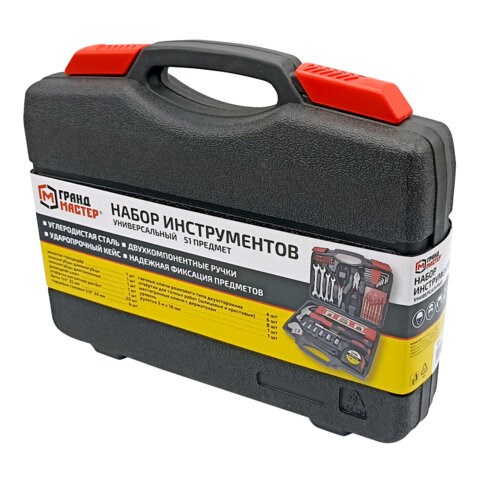 Набор инструментов универсальный, 51 предмет, пластиковый кейс, ГРАНДМАСТЕР, 671333