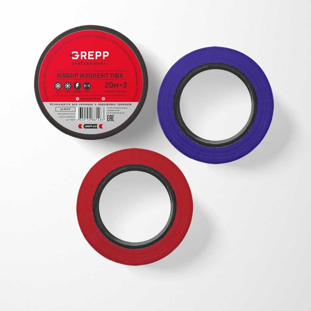 Набор изолент Ladina GREPP ПВХ 0,15х19 мм, 20 м, 3 шт. 2610-07 используется для изоляции и маркировки проводов. Имеет широкий температурный диапазон применения. В наборе 3 штуки разных цветов.