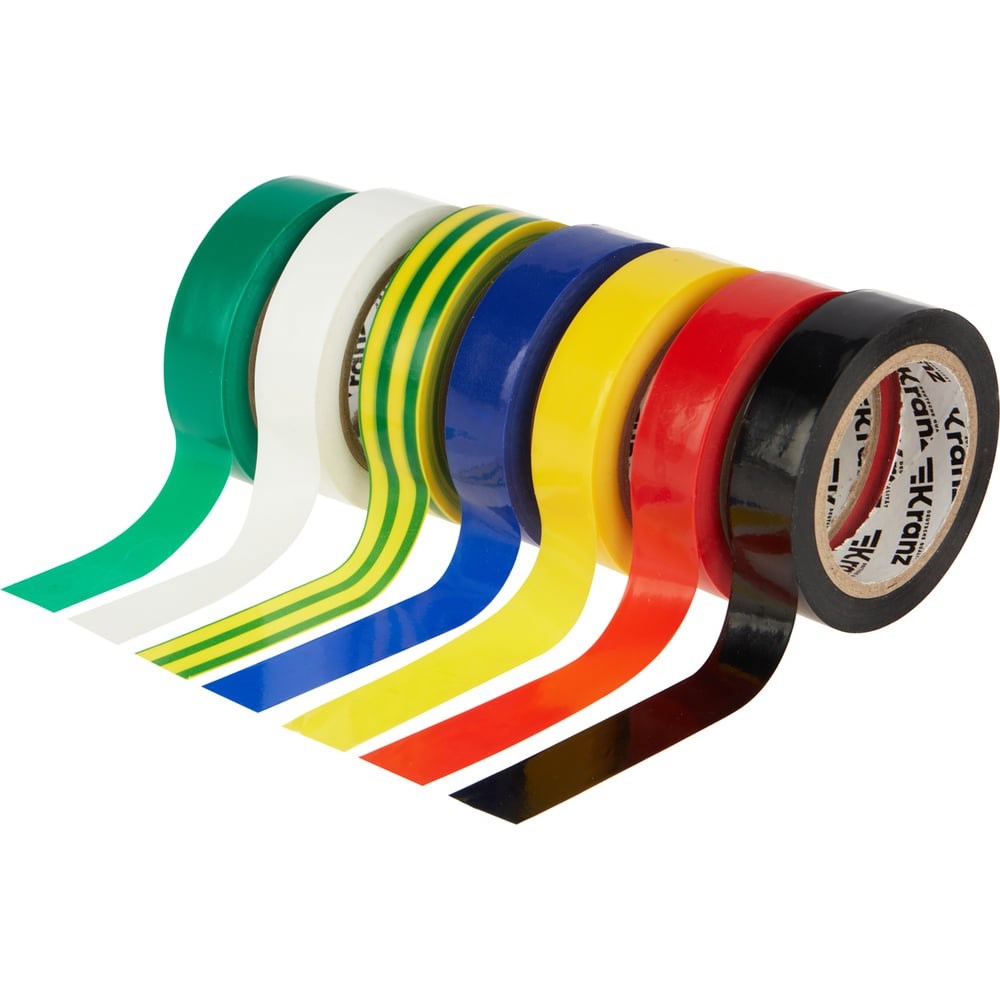 Набор изоленты KRANZ предназначен для электрической изоляции, цветной маркировки, соединения, защиты от внешних факторов и герметизации кабелей, проводов и шнуров. Обеспечивает высокое качество обмотки и защищает места соединения от влаги, пыли, грязи, механических повреждений и перепадов температуры окружающей среды. Лента выполнена из высококачественной ПВХ-пленки с клеевым слоем.Особенности:Напряжение: до 6000 ВРастяжение: до 180%Температура использования: -10...+50 °СНе поддерживает горениеУстойчива к УФ, слабым растворителям и солям
