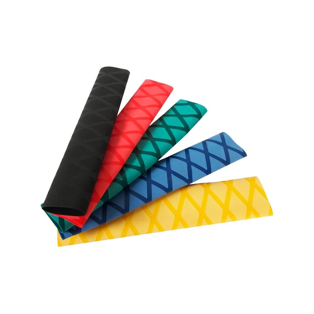 Набор термоусадочных трубок, противоскользящая оболочка, диаметр 25мм, длина 20см 5шт JTC-5918 используется для обтягивания рукояток различных инструментов для удобного обхвата ладонью и снижения эффекта проскальзывания. Минимальная температура усадки составляет 70°С. Коэффициент термоусадки: 2:1.