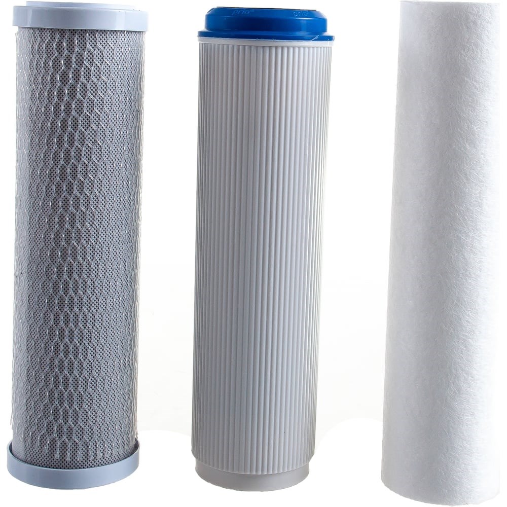 Набор картриджей Prio Новая вода К 600 предназначен для фильтра Prio Новая вода Praktic EU200 и состоит из трех картриджей: К 100 применяется для механической очистки воды от примесей и ржавчины. Картридж выполнен из чистого полипропилена с тонкостью фильтрации 5 микрон. К 205 предназначен для очистки воды от хлора, хлорорганических соединений, пестицидов, нефтепродуктов, тяжелых металлов и прочих органических и неорганических соединений. Картридж изготовлен из гранулированного кокосового активированного угля. К 200 обеспечивает глубокую очистку воды от широкого спектра органических и неорганических растворенных примесей, а также устраняет неприятный запах воды и улучшает ее вкус. Картридж изготовлен из прессованного кокосового активированного угля, благодаря чему увеличивается сорбция вредных примесей.