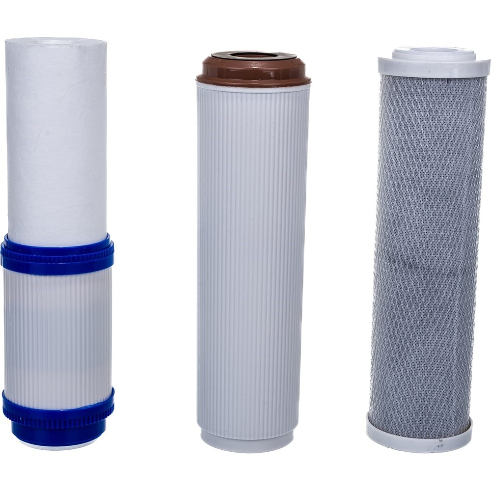 Набор картриджей Prio Новая вода К 606 предназначен для фильтра Prio Новая вода Praktic EU312 и состоит из трех картриджей: К 604 применяется для механической очистки воды от примесей и ржавчины, а также обеспечивает очистку воды от хлора, хлорорганических соединений, пестицидов, нефтепродуктов, тяжелых металлов, устраняет неприятный запах воды и улучшает ее вкус. Часть картриджа выполнена из нетканого полипропилена с тонкостью фильтрации 5 микрон, другая часть состоит из гранулированного кокосового активированного угля. К 400 предназначен для удаления растворенного железа в воде (Fe2+). Картридж состоит из синтетического цеолита и гранулированного активированного угля, благодаря чему улучшается вкус воды. К 200 обеспечивает глубокую очистку воды от широкого спектра органических и неорганических растворенных примесей, а также устраняет неприятный запах воды и улучшает ее вкус. Картридж изготовлен из прессованного кокосового активированного угля, благодаря чему увеличивается сорбция вредных примесей.