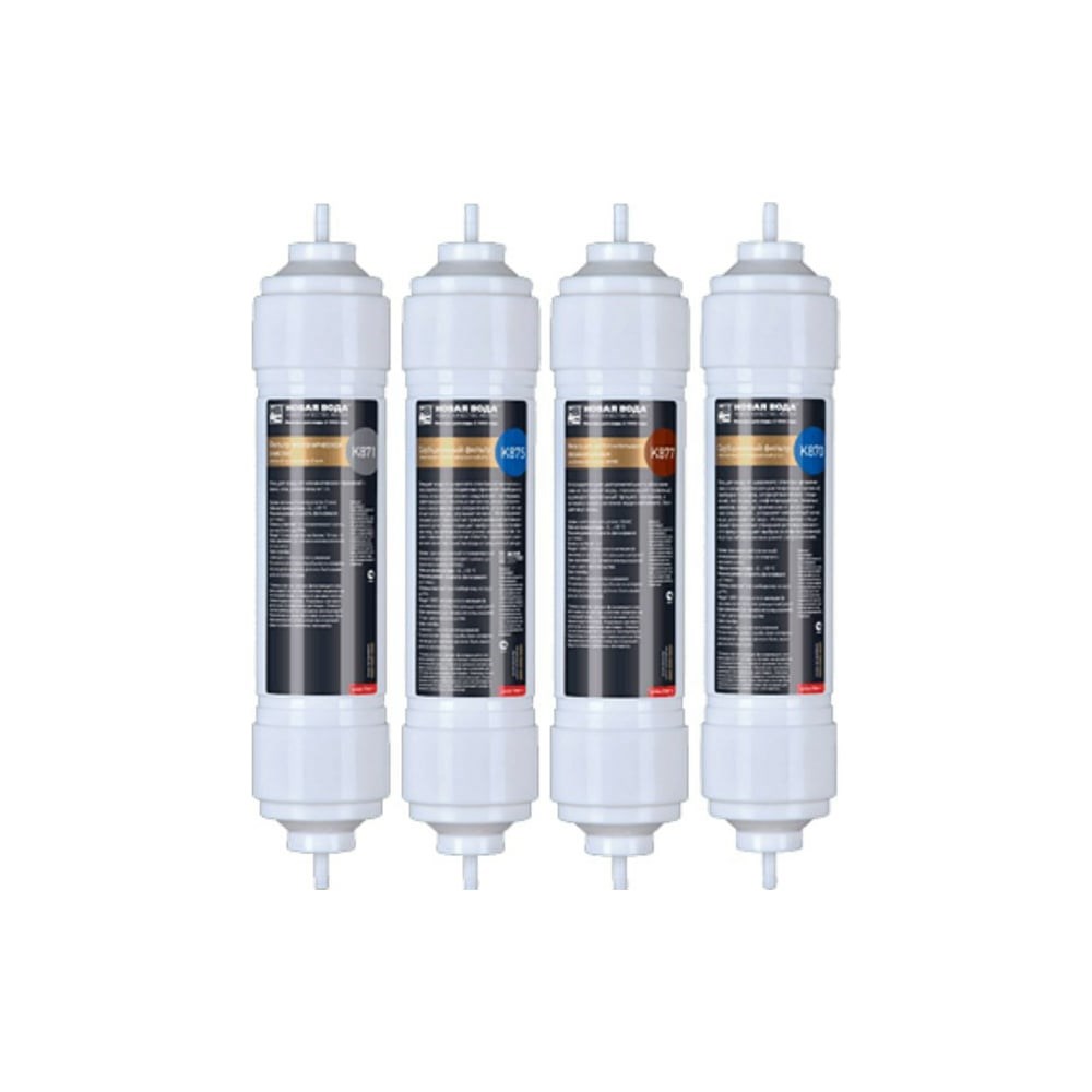 Набор картриджей Prio Новая вода К 684 предназначен для фильтра Prio Новая вода Expert М312 и состоит из четырех картриджей: K 871 очищает воду от механических примесей и ржавчины, состоит из нетканого полипропилена пористостью 5 мкм. K 875 производит очистку воды от хлора, хлорорганических соединений, пестицидов, гербицидов, сельскохозяйственных удобрений и продуктов их распада, нефтепродуктов, фенолов, тяжелых металлов, радиоактивных элементов, а также устраняет неприятный запах воды и улучшает ее вкус. Картридж состоит из гранулированного кокосового активированного угля с добавлением серебра. К 877 применяется для удаления растворенного железа (Fe2+) из воды. Картридж выполнен из синтетического цеолита и гранулированного активированного угля с добавлением серебра, благодаря чему улучшается вкус воды. K 870 предназначен для глубокой очистки от широкого спектра органических и неорганических растворенных примесей, а также устраняет неприятный запах воды и улучшает ее вкус. Состоит из прессованного активированного угля.