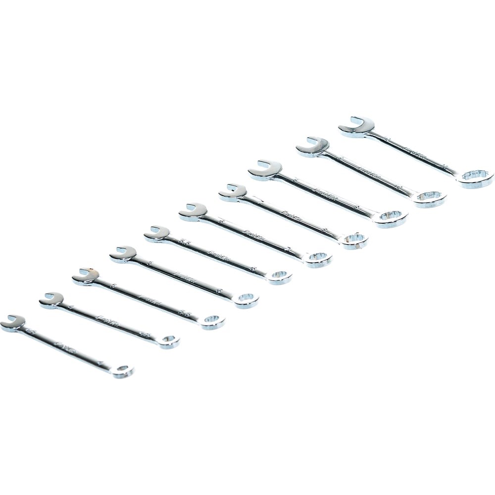 Набор ключей ProsKit HW-609B 00276158 состоит из 10 комбинированных ключей для точных работ. Каждый из ключей оснащен открытым зевом. Инструмент изготовлен из среднеуглеродистой стали (AISI 1045), подходит для профессионального использования.