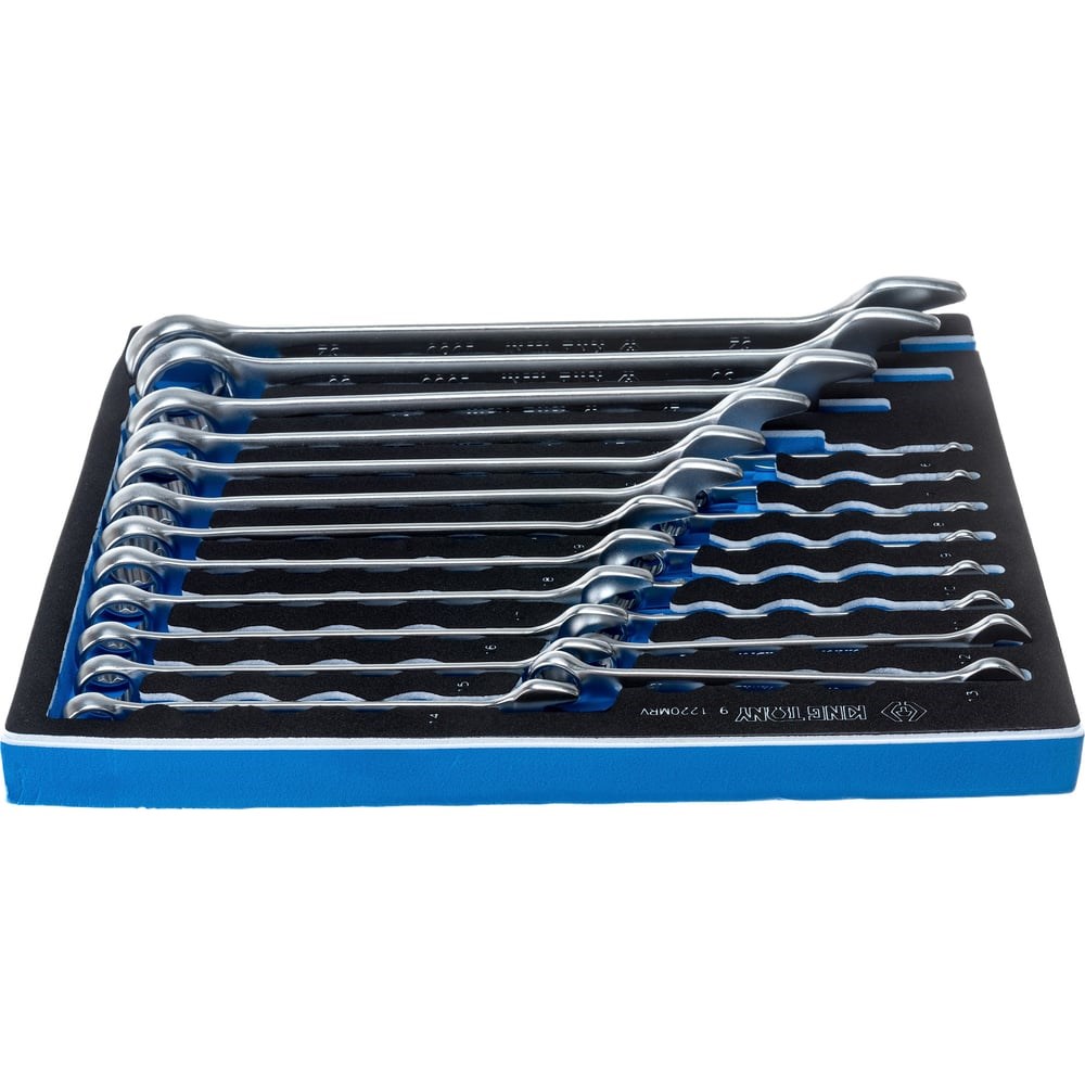Набор комбинированных ключей (ложемент, 20 предметов) KING TONY 9-1220MRV существенно облегчает процесс установки и съема крепежа. Устойчивый к растворителям и деформации ложемент из этиленвинилацетата (ЭВА) обеспечивает удобное оснащение инструментальной тележки. Набор отличается богатой комплектацией и высоким качеством исполнения, что позволяет использовать его в профессиональных масерских по ремонту автомобиля, а также на производстве.