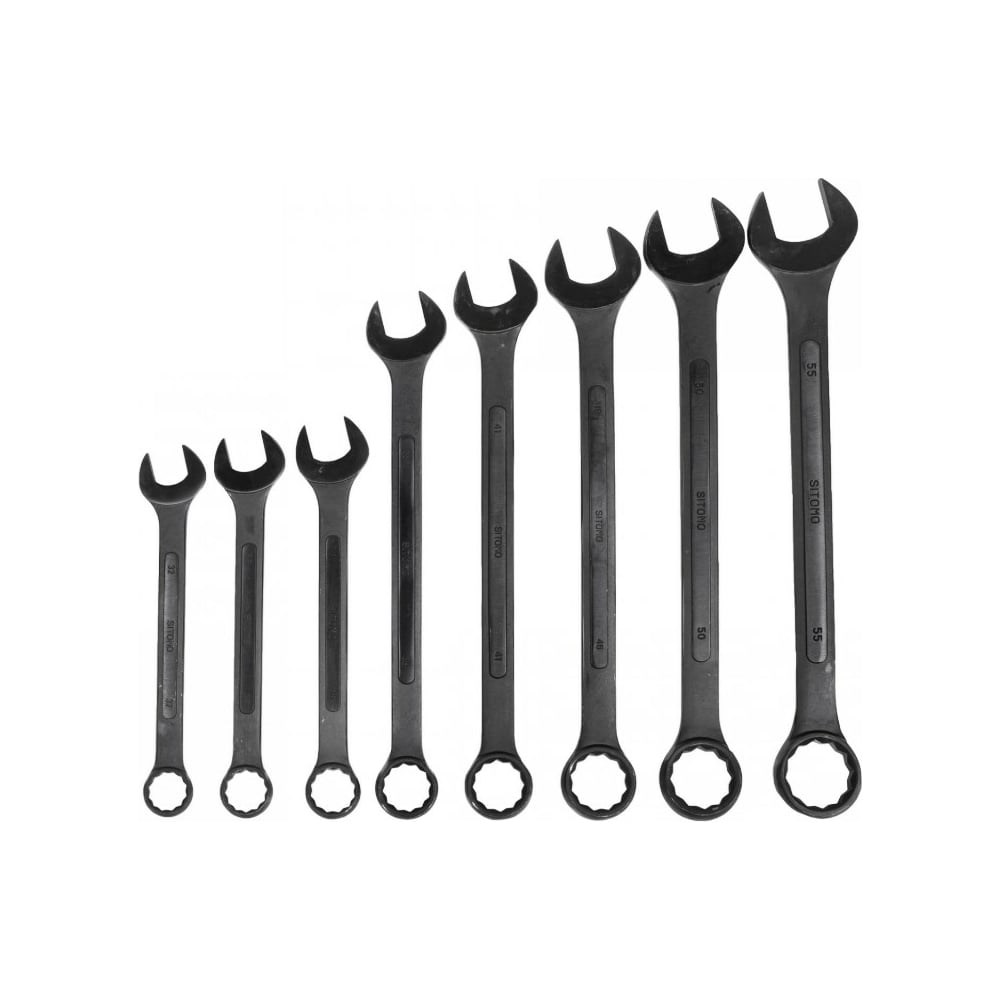 Набор гаечных комбинированных ключей 8 шт SITOMO 32-55 165063 выполнен из прочной стали, которая выдерживает значительное усилие. Это позволяет без труда монтировать и демонтировать даже сложный крепеж.