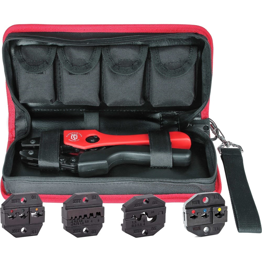 Ручные пресс-клещи КВТ СТК+4, 4 матрицы в сумке 75907 имеет в комплекте 4 матрицы для опрессовки изолированных и неизолированных гильз, наконечников и разъемов. Клещи оснащены храповым механизмом и имеют усиленную конструкцию. Удобные эргономичные рукоятки обеспечивают надежность удержания. Матрицы можно без труда менять при необходимости. Размер инструмента 220 мм.