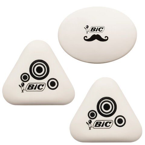 Набор ластиков BIC, "Mini Fun" 3 шт., белый с рисунком, 2 треугольных и 1 овальный, 927870
