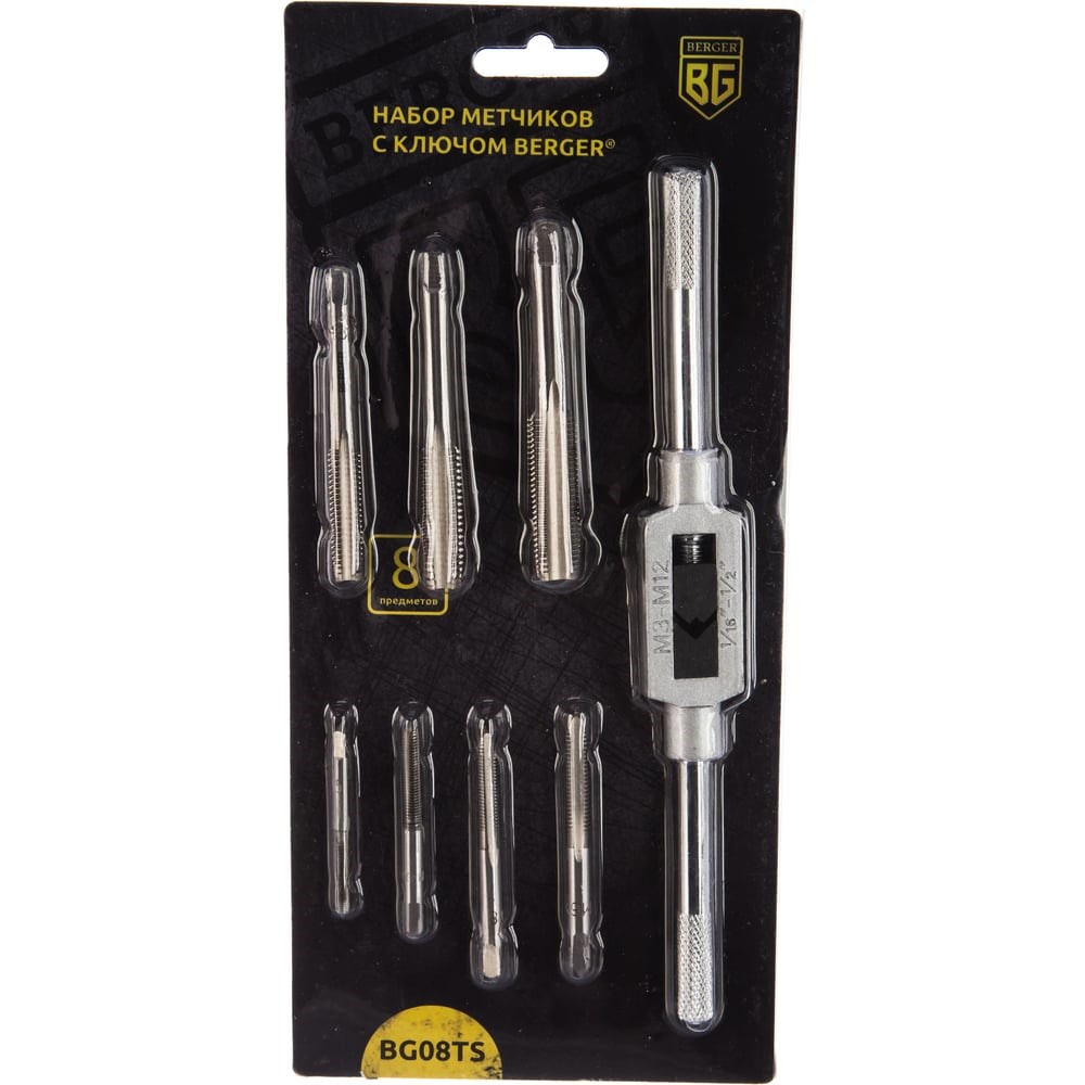 Набор метчиков с ключом 8шт Berger BG BG08TS - это небольшой комплект высококачественных ручных приспособлений для нарезания или восстановления внутренней резьбы в различных металлических деталях и заготовках.Материал: легированная сталь 9XC Твердость: 61 HRCИспользуется для нарезания, калибрования внешней и внутренней резьбы. Плашки и метчики изготовлены из инструментальной легированной стали 9ХС (средняя твердость 61 HRC), обладают повышенной износостойкостью, упругостью, сопротивлением к изгибу и кручению, стойкостью к контактным нагрузкам.