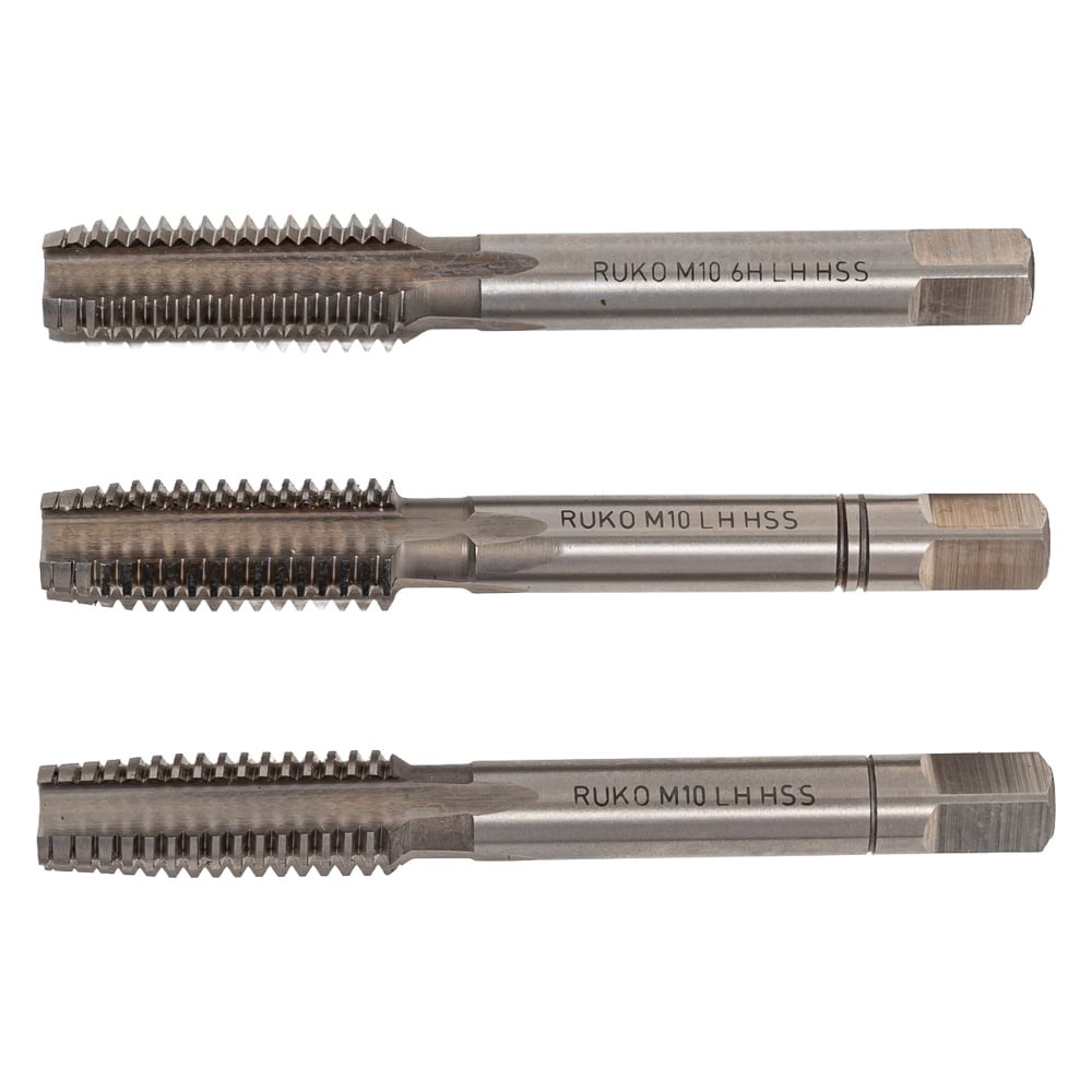 Набор левых ручных метчиков Ruko M10x1,5мм левый 230100LI предназначен для создания внутренней левой резьбы в различных материалах. Изготовлен из высококачественной быстрорежущей стали HSS-G, которая гарантирует прочность и износостойкость. Формирование резьбы происходит в 3 этапа, сначала черновым метчиком(№1), затем чистовым(№2) и финишным(№3). Благодаря этому, снижается усилие, прилагаемое к каждому метчику, а получаемая резьба более точная и чистая. Подходит для обработки заготовок, выполненных из легированной стали, чугуна, алюминия, меди, бронзы, цинка, с пределом прочности до 800MPa.