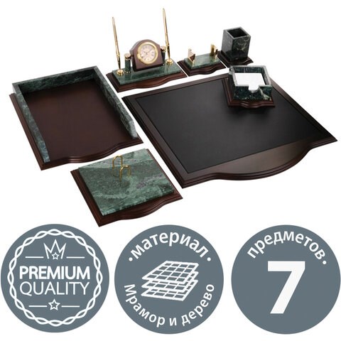 Набор настольный GALANT из мрамора, 7 предметов, зеленый мрамор/отделка красное дерево, 231485