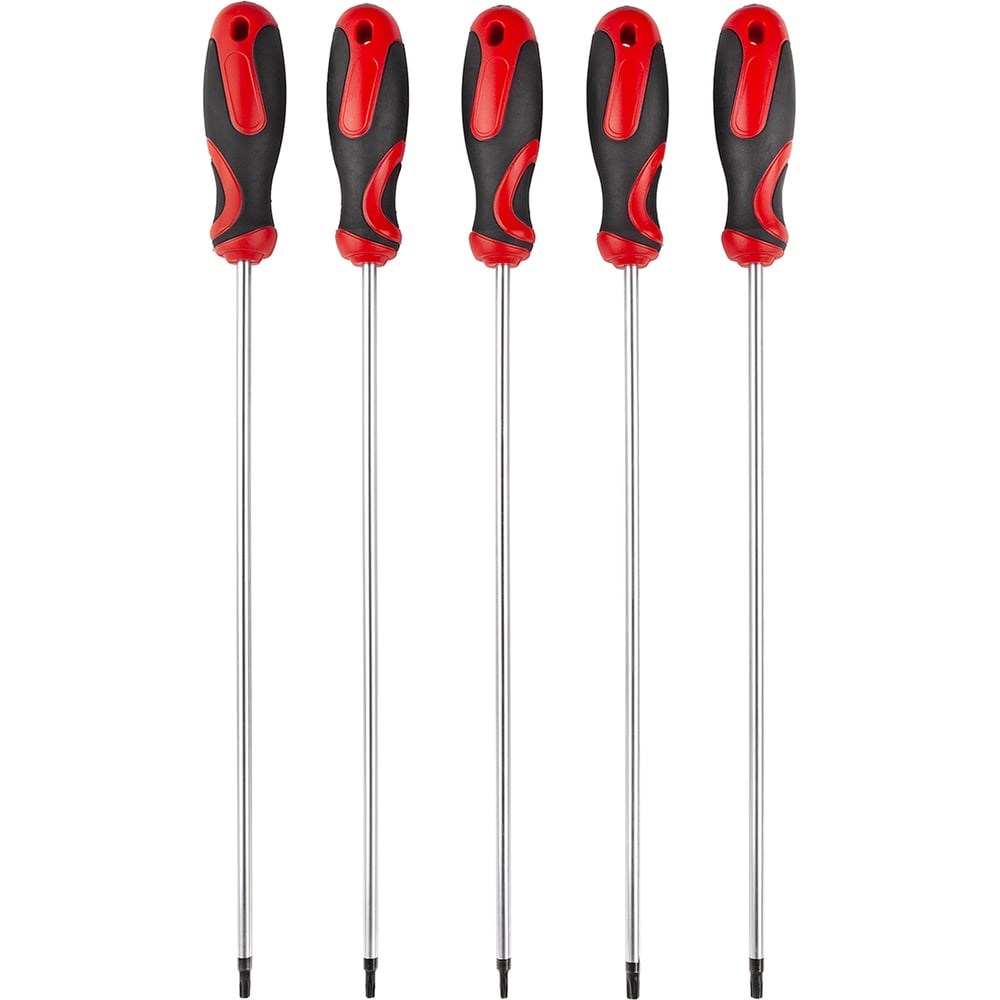 Набор отверток экстрадлинных TORX TH15-TH30, 300мм 5 предметов AV-921085 состоит из пяти инструментов, которые имеют нескользящие прорезиненные рукоятки, что обеспечивает качественное выполнение работы. Прочные стержни обеспечивают долгий срок службы инструмента.
