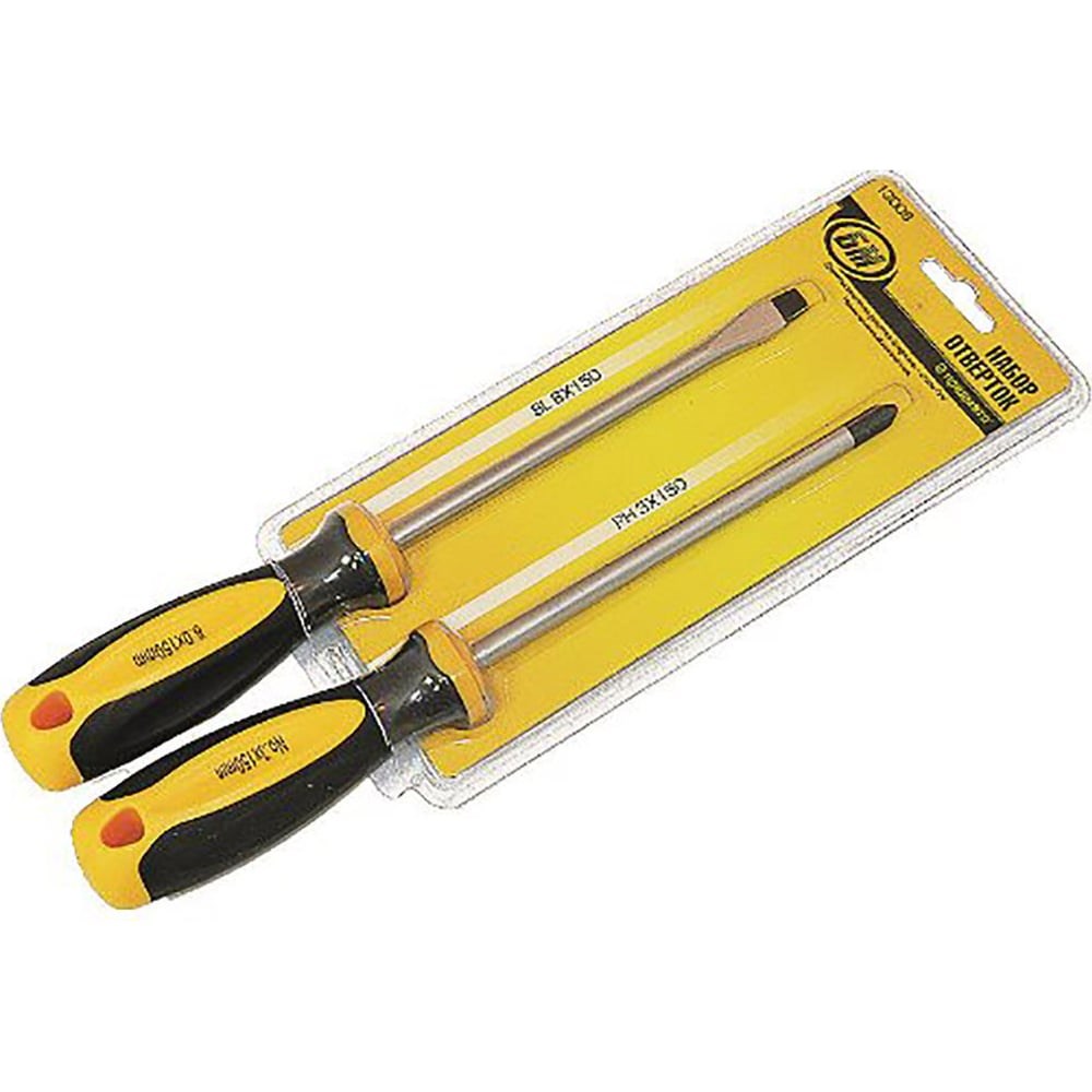 Набор отверток БМ 2 предмета 13008 предназначен для монтажа и демонтажа резьбовых соединений. Стержень - сталь CRV. Намагниченный наконечник. Двухкомпонентная антискользящая рукоятка позволяет проводить работу с удобством и комфортом.