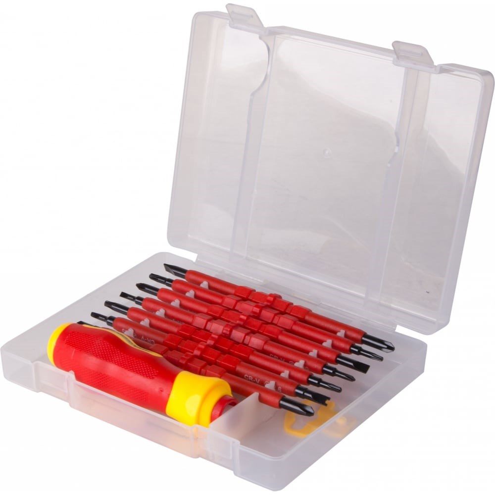 Набор отверток PROCONNECT 8 предметов 12-4773 имеет изолирующее покрытие, которое позволяет осуществлять электромонтажные работы. Набор изделий предназначен для монтажа и демонтажа крепежных элементов. Стержни намагничены и изготовлены из хромованадиевой стали. Эргономичная изолированная двухкомпонентная рукоятка делает работу с инструментом легкой и удобной. Набор поставляется в пластиковом боксе.