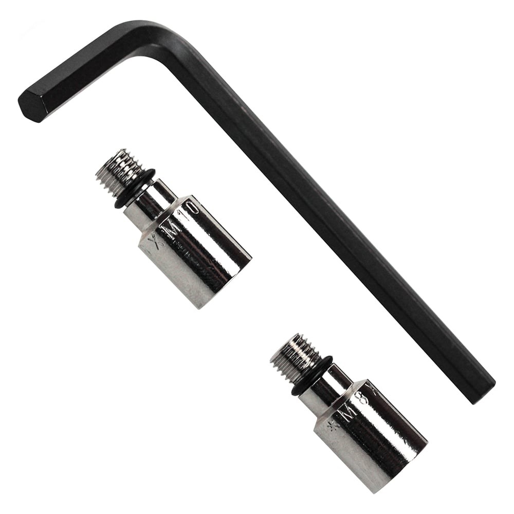 Набор переходников для гибкой подводки смесителя MPF М8-М10, 2 шт + шестигранный ключ ИС.101084 предназначен для подключения стандартной подводки к смесителю с резьбой М8. Резьба М10, внутренняя; Резьба M8, наружная; Материал уплотнительных колец: EPDM; Материал ключа: хромованадиевая сталь; Рабочее давление: 20 Bar (2,0 МПа); Рабочая температура: от +1°C до +100°C.